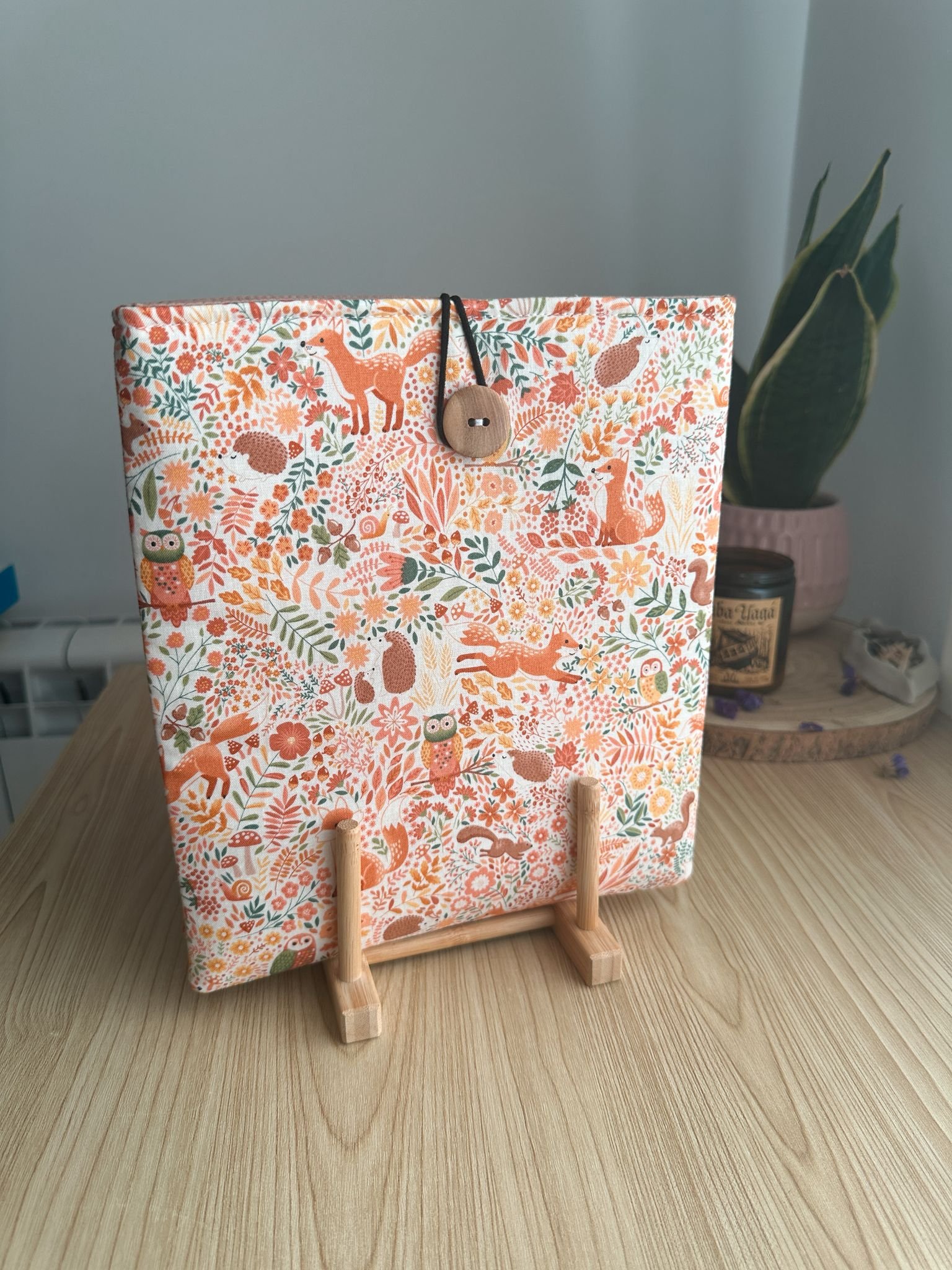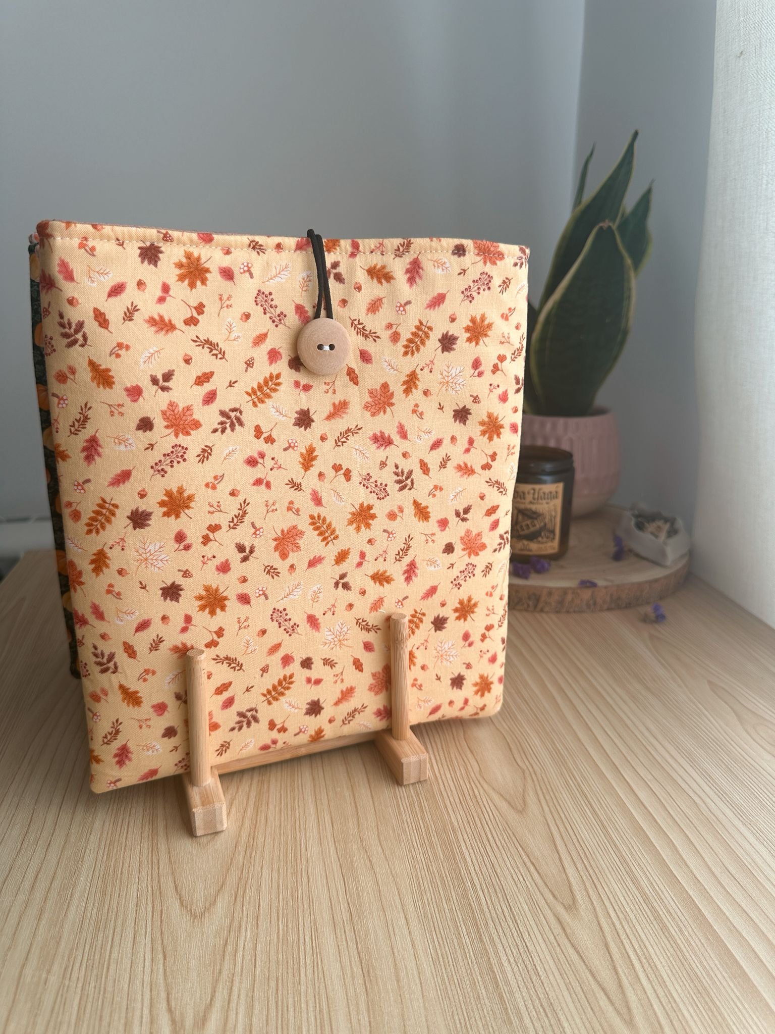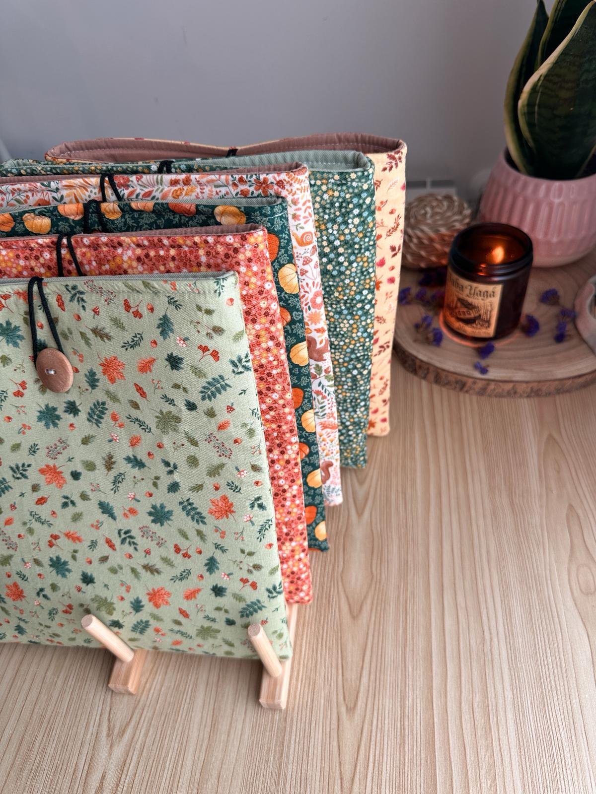 Funda de libro con estampados de la Colección Fugaz Otoño.
