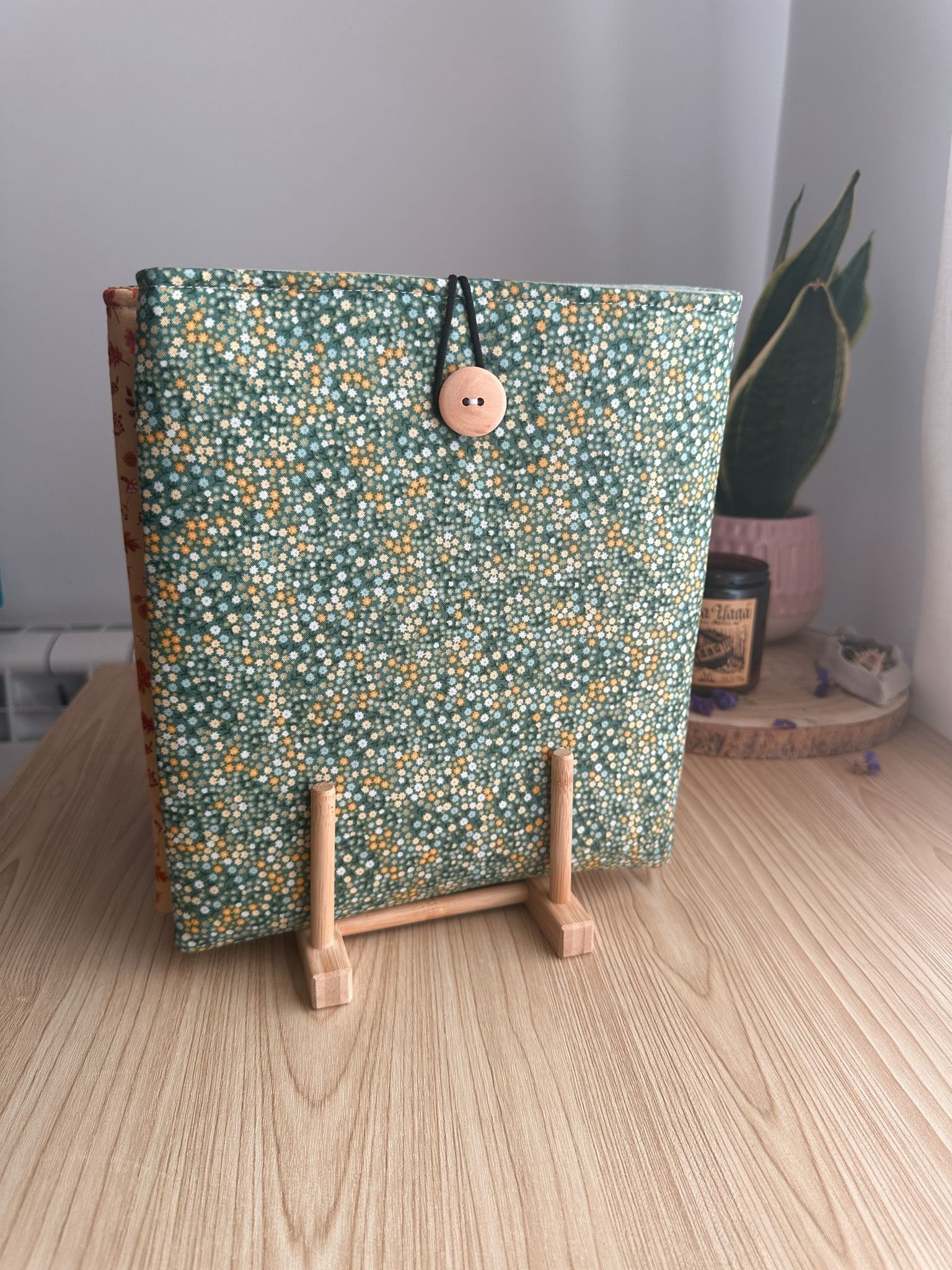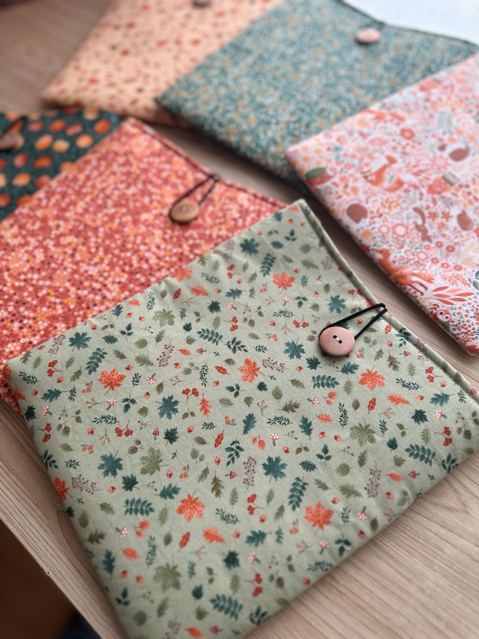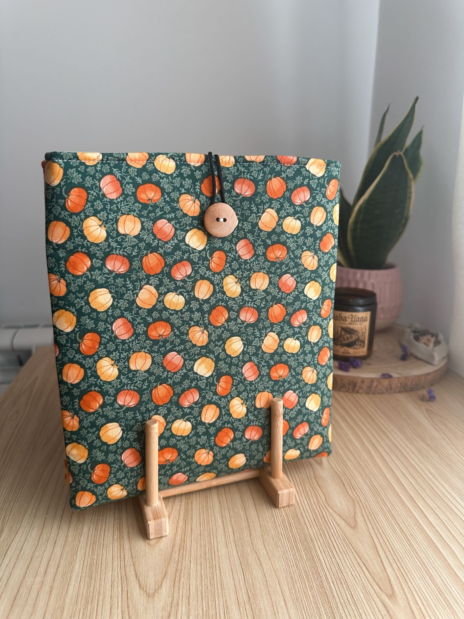 Funda de libro con estampados de la Colección Fugaz Otoño.