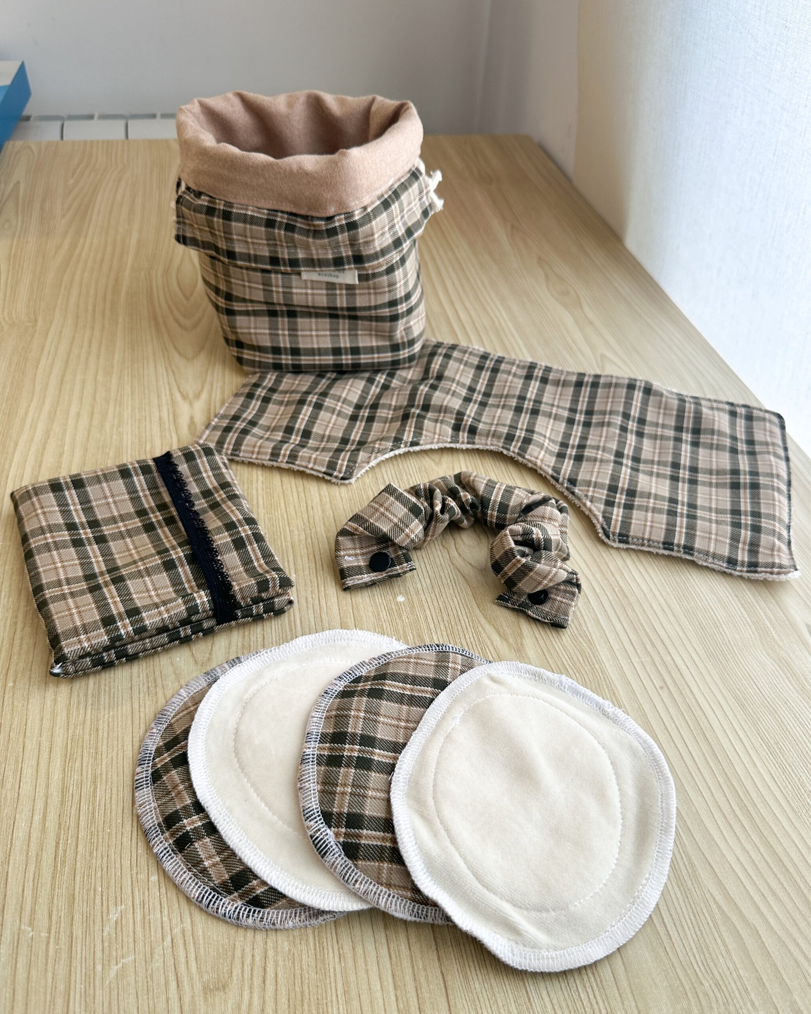 Kit de productos de tela para el cuidado de las mamás lactantes.