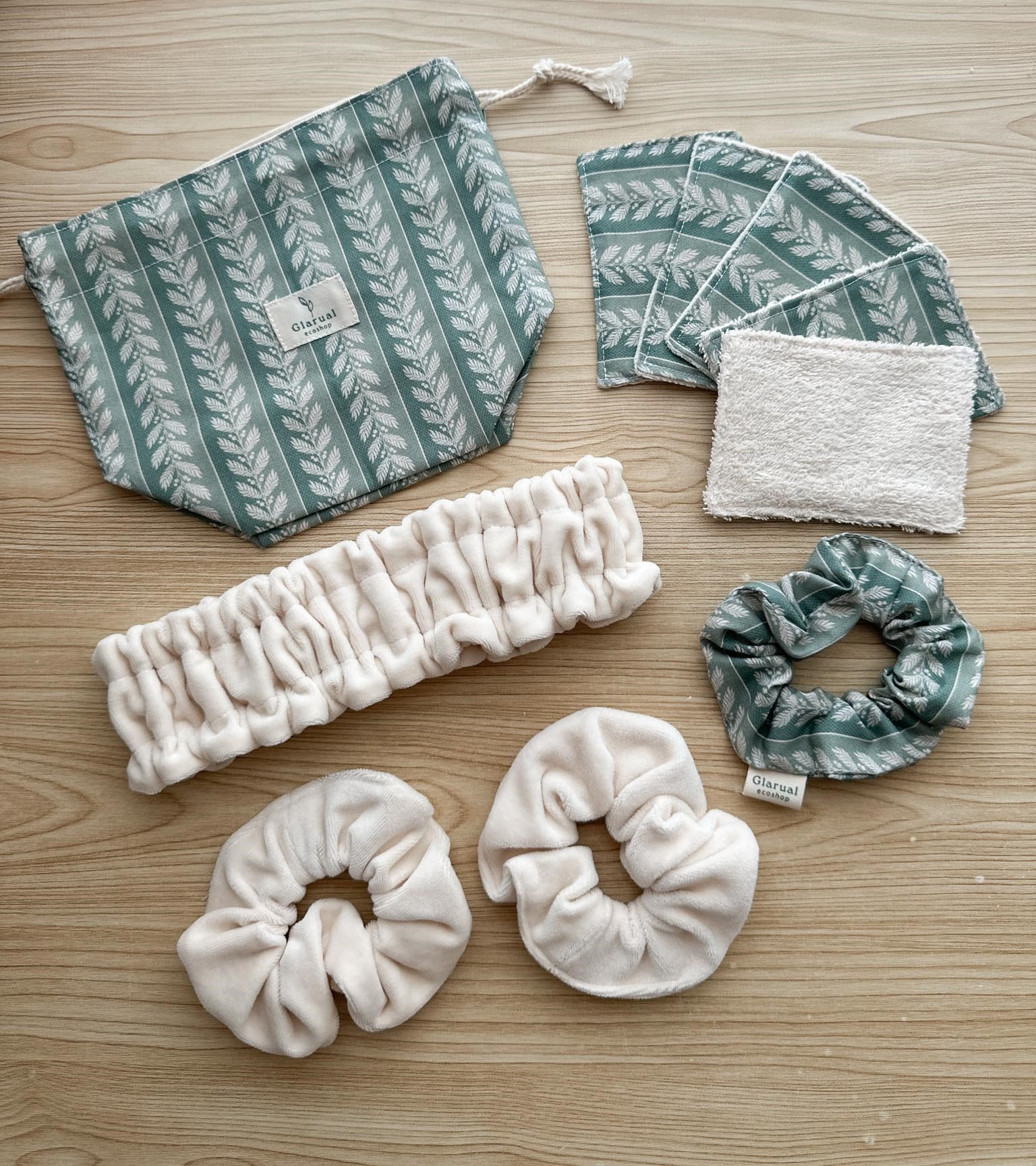 🌱 Diadema facial: la diadema más suave que te has puesto nunca. Hecha con la misma tela aterciopelada 100% de algodón con la que hago mis compresas de tela. Tiene tres canales con elásticos para que se adapte y se sujete perfectamente a tu cabeza. El pelo te quedará recogido, y si te llega algo de agua no hay problema porque tiene absorbente.