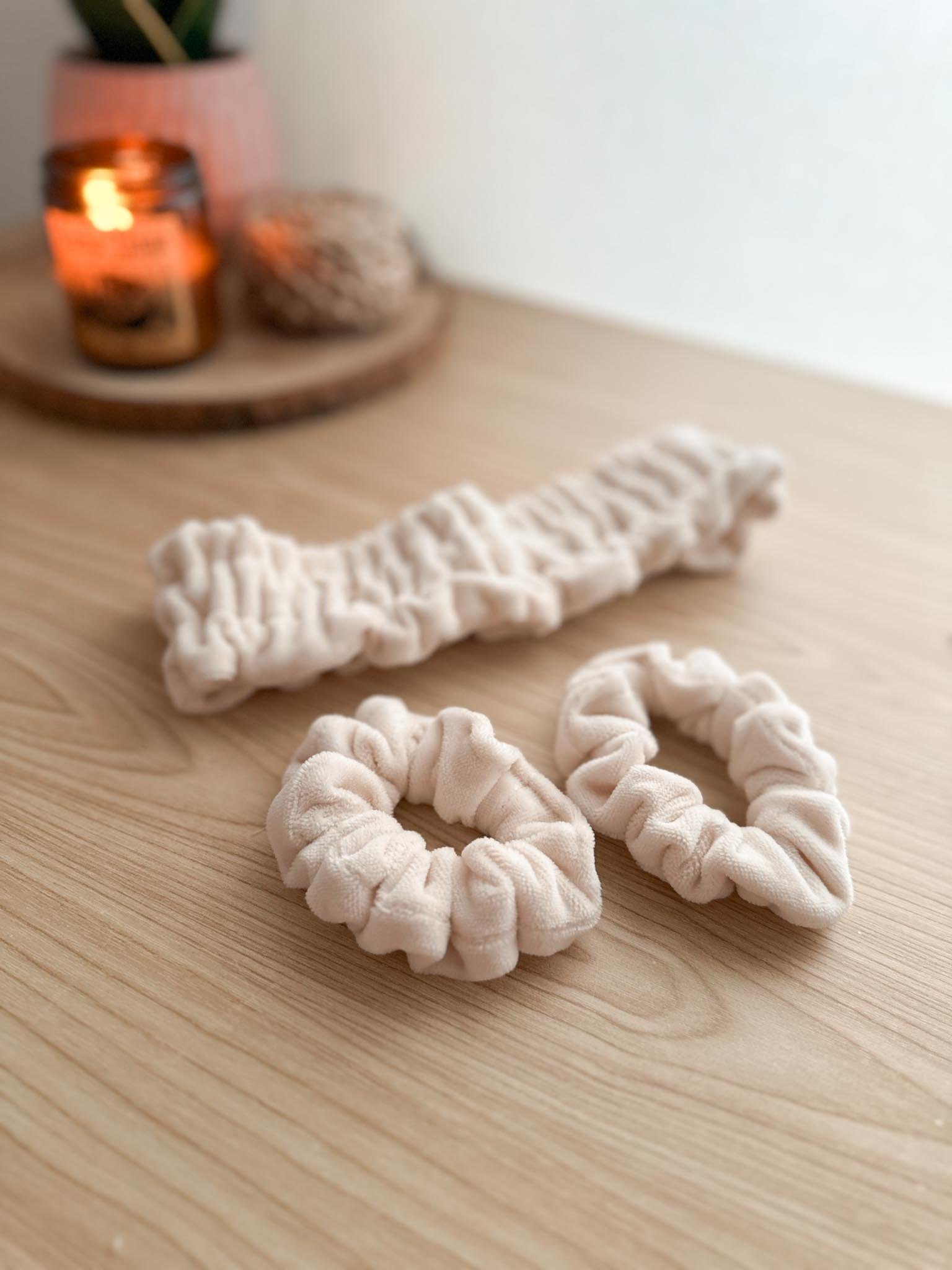 🌱 Diadema facial: la diadema más suave que te has puesto nunca. Hecha con la misma tela aterciopelada 100% de algodón con la que hago mis compresas de tela. Tiene tres canales con elásticos para que se adapte y se sujete perfectamente a tu cabeza. El pelo te quedará recogido, y si te llega algo de agua no hay problema porque tiene absorbente.
