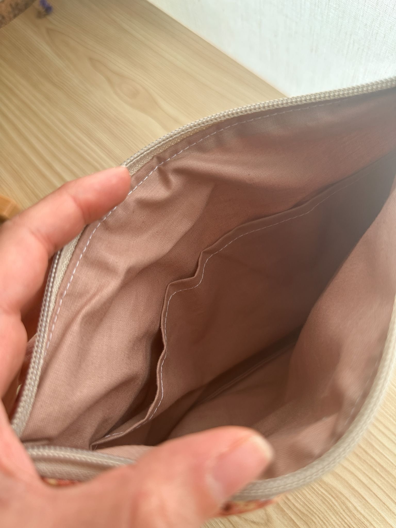 Lleva una cuerda para poderlo colgar a la muñeca y usarlo solo de bolso de mano.