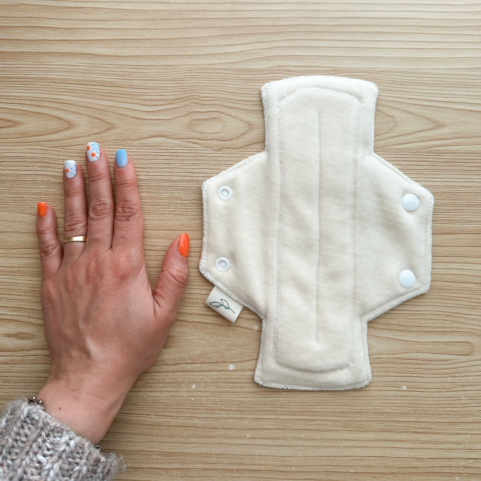 - Capa 2 (absorbente): tela muy absorbente 100% algodón orgánico GOTS. Se pueden poner varias capas según la absorción deseada.